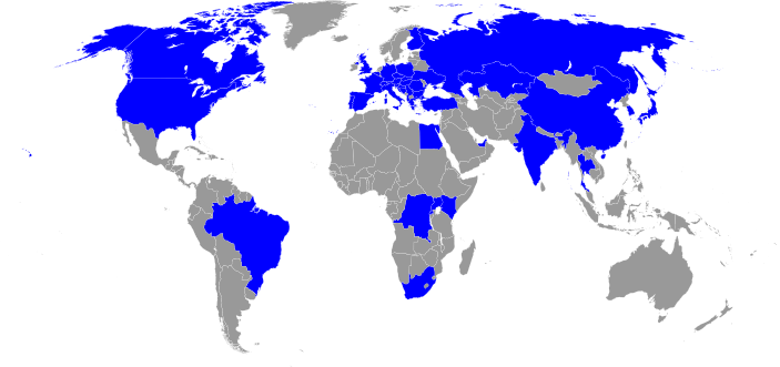 Map of the World with Countries having an IMEKO Member Organization or Institute